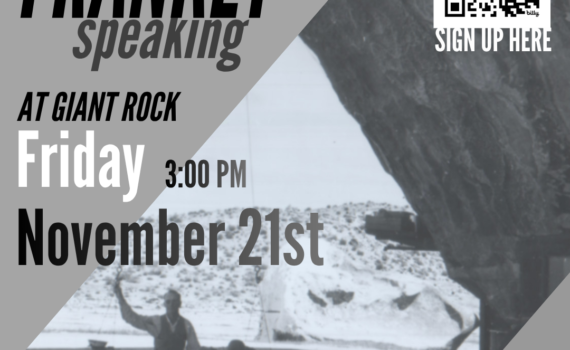 Date: November 21, 2025Time: 3:00 PMLocation: Giant Rock, Landers, CAMore info Rumors surround the life of Frank Critzer at Giant Rock. Let's nail down the truth while magentically sweeping for metal recovered for creative reuse. This event is part of https://www.falloffreedom.com/.